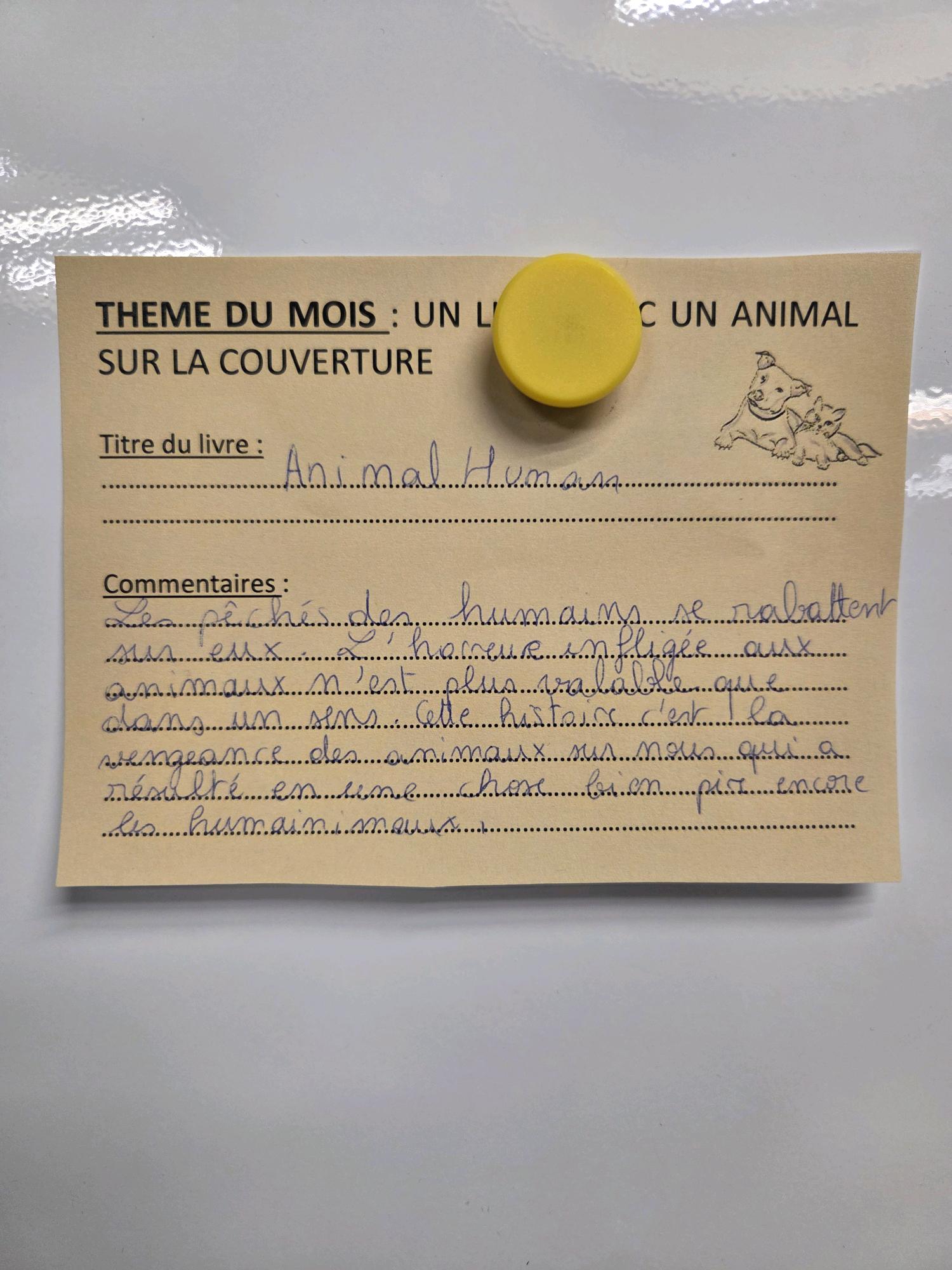 • Janvier : un livre avec un animal sur la couverture