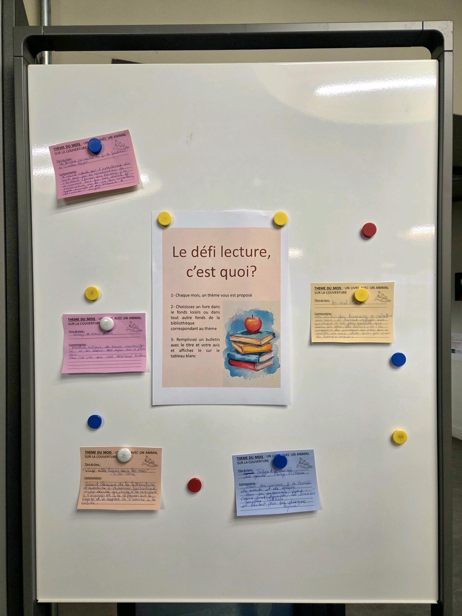 Le principe du défi lecture est simple : dans le fonds loisirs ou plus largement dans les collections de la BU, choisir un ouvrage correspondant au thème du mois, puis remplir un bulletin afin de partager son avis en quelques lignes. Disposés ensuite sur les étagères du fonds loisirs et au bureau d’accueil du 2ème étage, les bulletins sont consultables librement par toutes et tous.