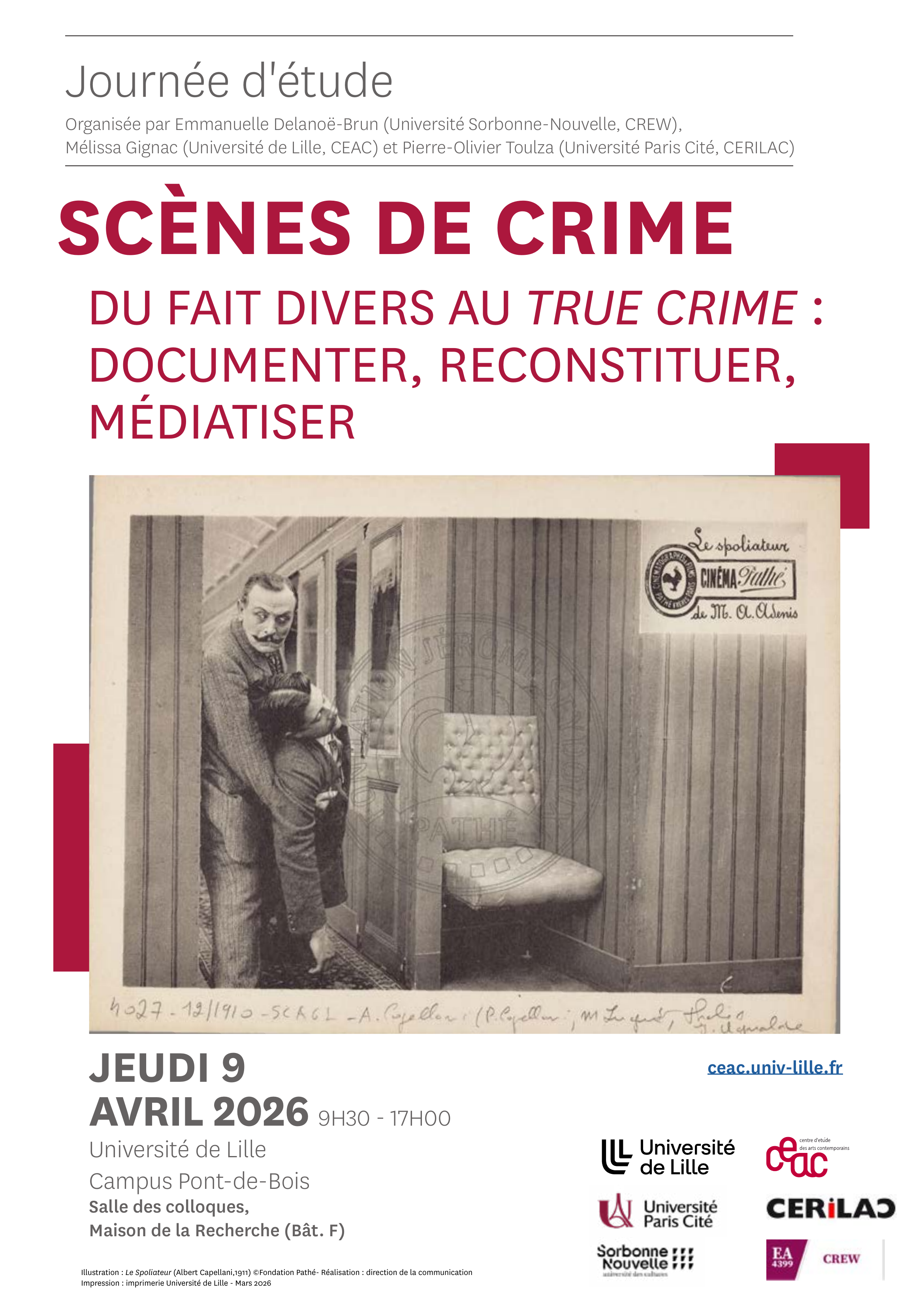 Journée d’étude « Scènes de crime. Du fait divers au true crime : documenter, reconstituer, médiatiser » – 9 Avril 2026